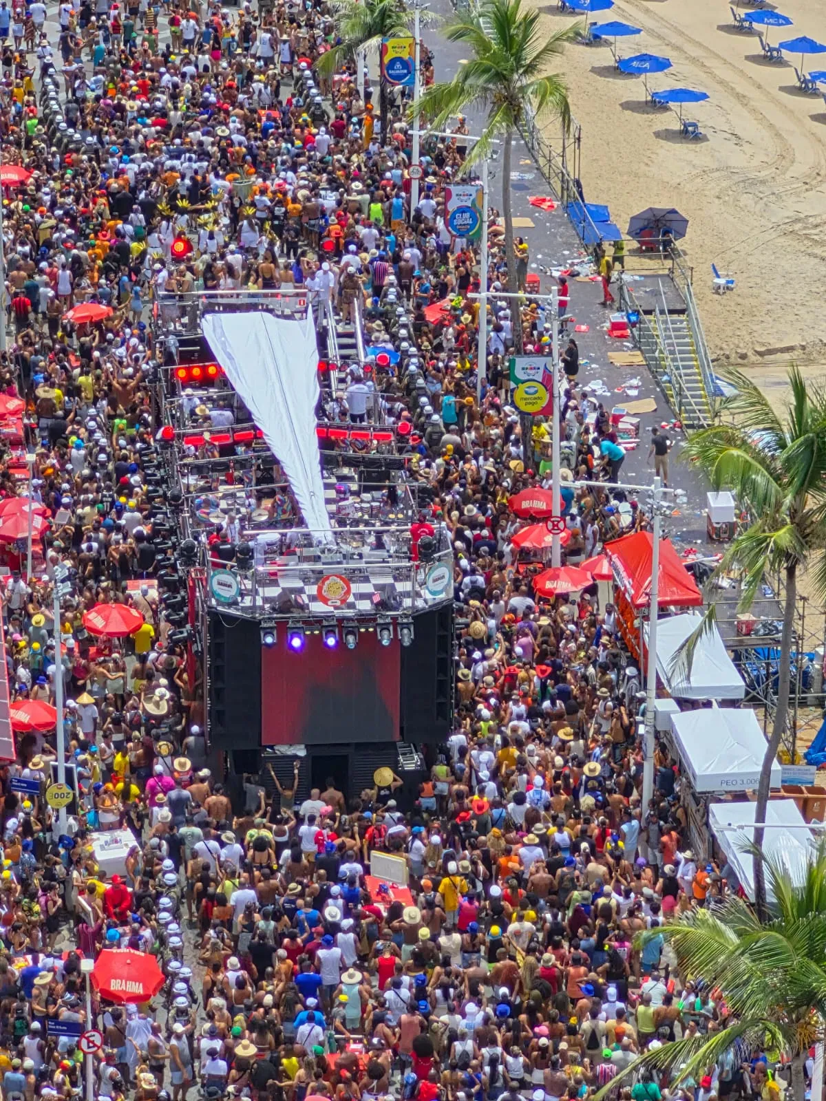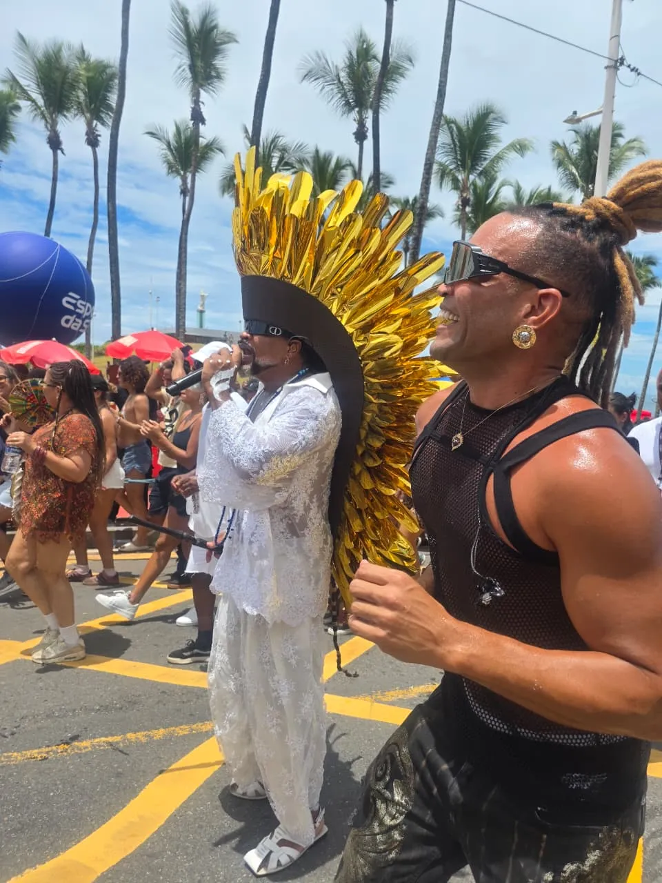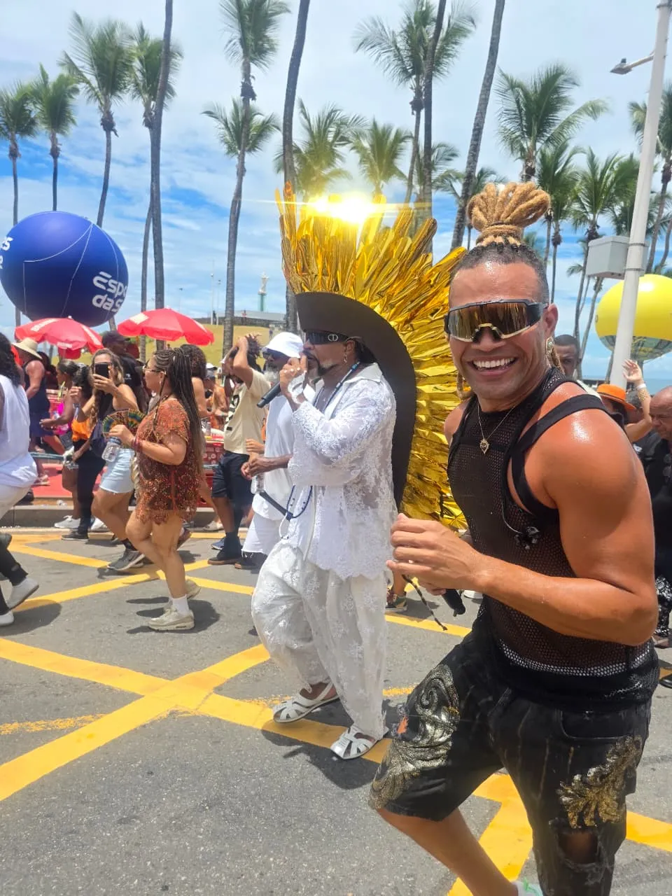 O desfile começou por volta das 10h e manteve o formato aberto, permitindo a participação de foliões, ambulantes, cordeiros, catadores e demais profissionais envolvidos na festa. Antes de iniciar o percurso, Brown realizou o tradicional Padê e abriu a apresentação cantando “Na Beira do Mar”.