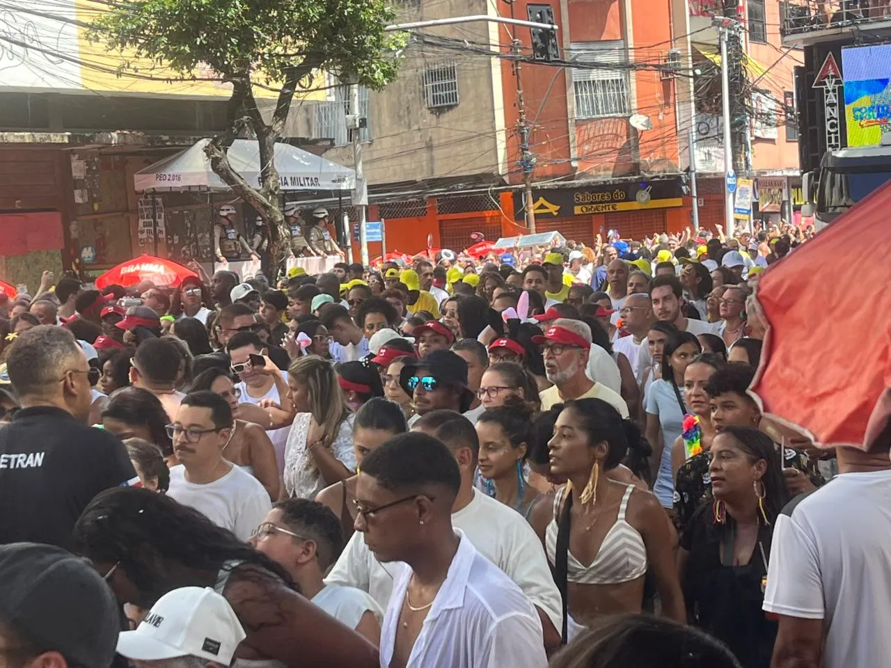 Com a multidão sob o sol a pino, chapéus, viseiras e bonés se tornaram peças quase obrigatórias na cabeça dos foliões.