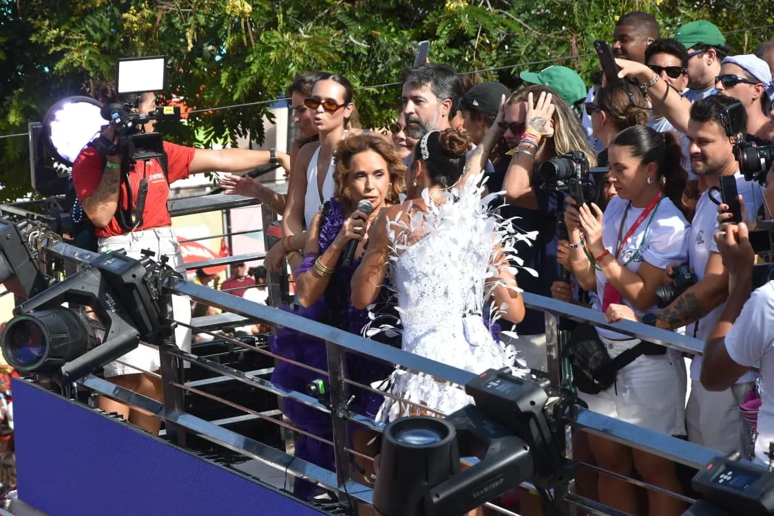 Daniela subiu ao trio para cantar sua aposta para o Carnaval, “É Terreiro”. As duas também interpretaram “O Mundo Vai” e “Maimbê Dandá”, animando os foliões no Centro da cidade.