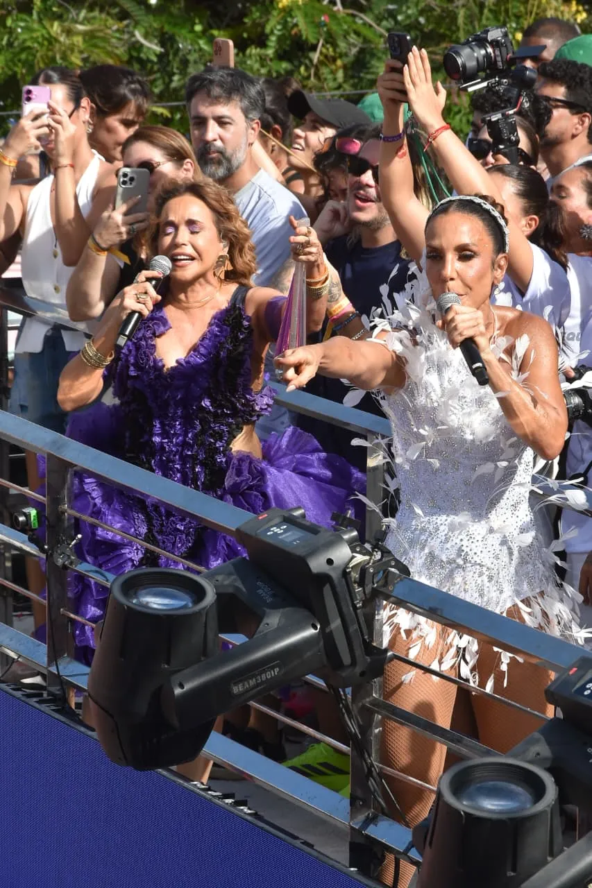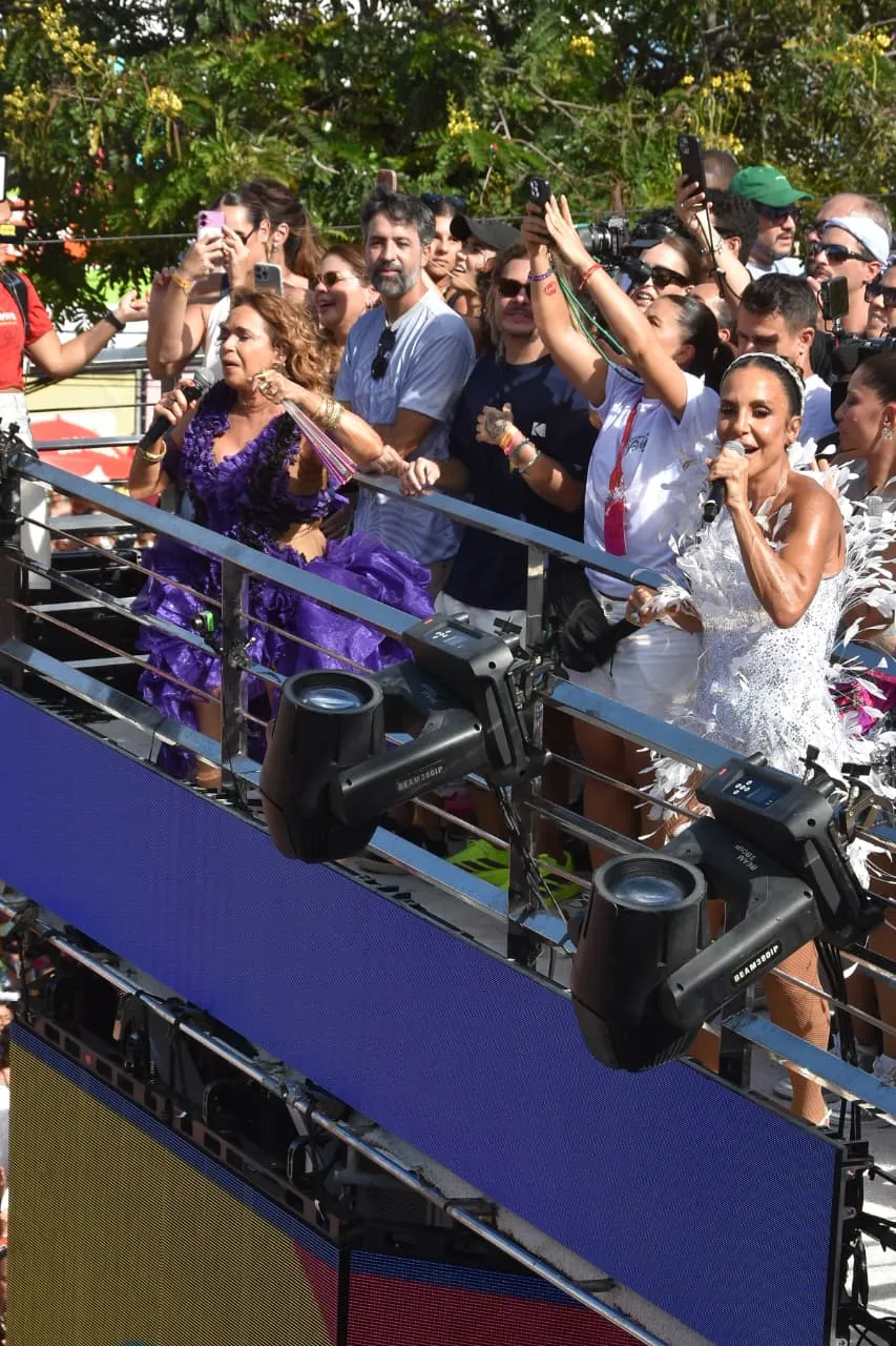 Ivete Sangalo levou uma convidada especial para sua pipoca no Circuito Osmar (Campo Grande), nesta terça-feira (17) de Carnaval. Durante o desfile, a cantora chamou ao trio Daniela Mercury e destacou a importância da artista para a folia baiana.