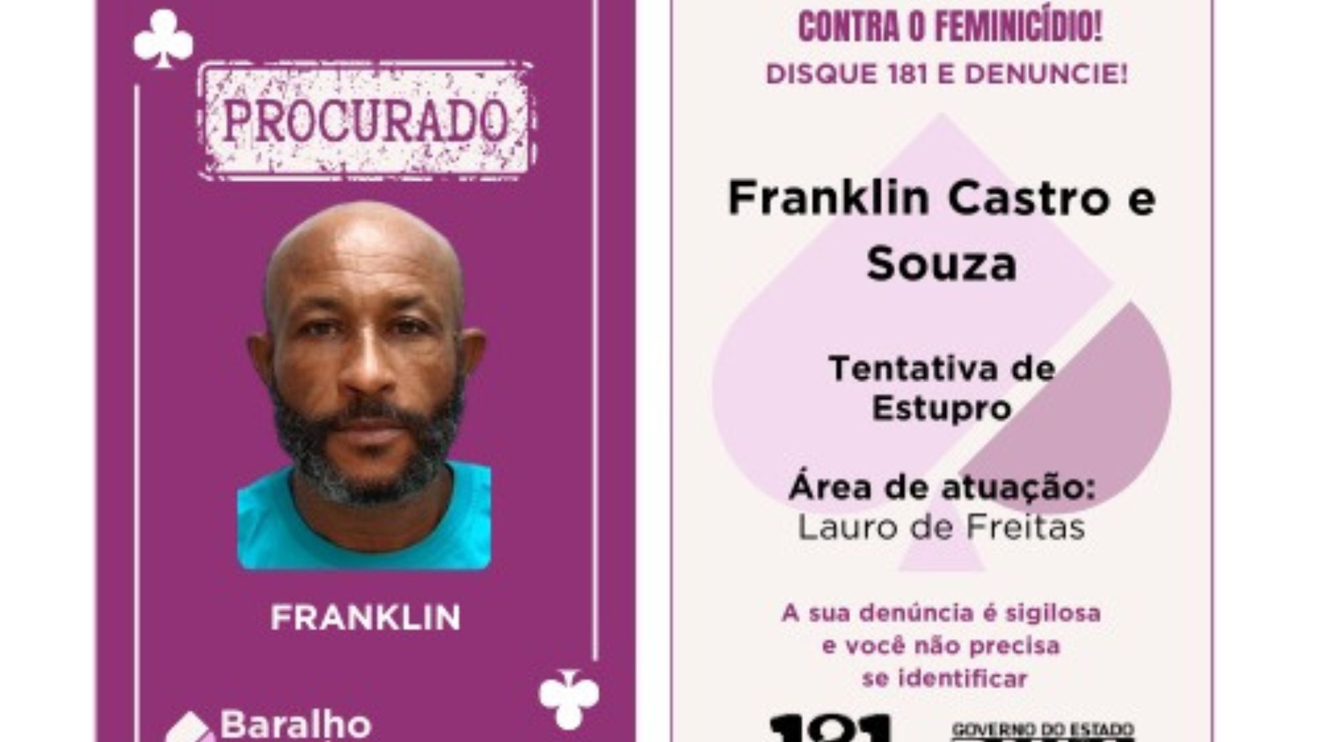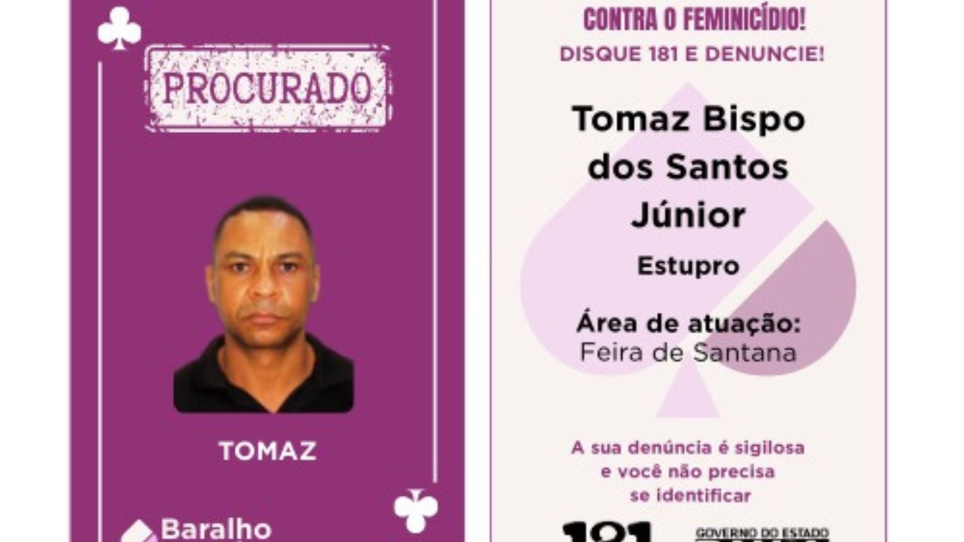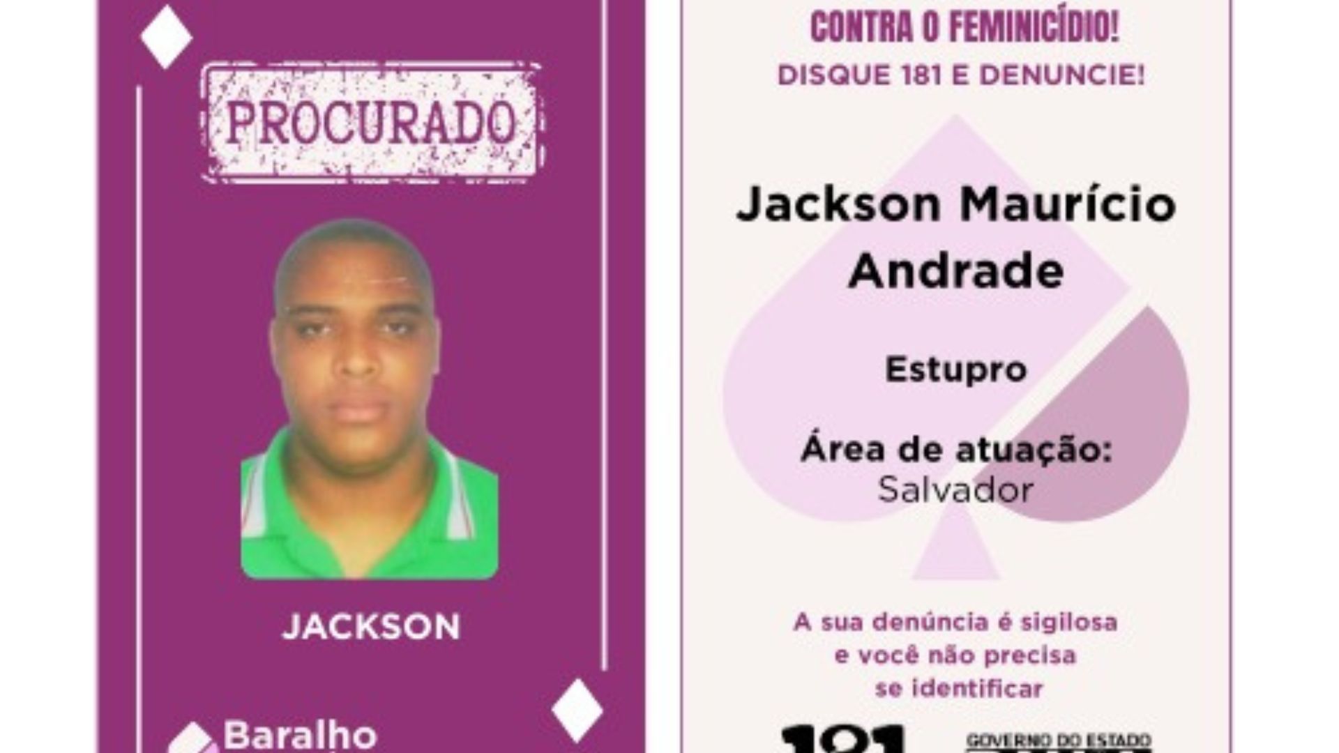 A Secretaria da Segurança Pública da Bahia (SSP) lançou nesta sexta-feira (12) o Baralho Lilás da SSP, plataforma que apresenta 16 procurados por crimes como estupro, estupro de vulnerável, feminicídio, tentativas de feminicídio, abuso de menor e violência doméstica.