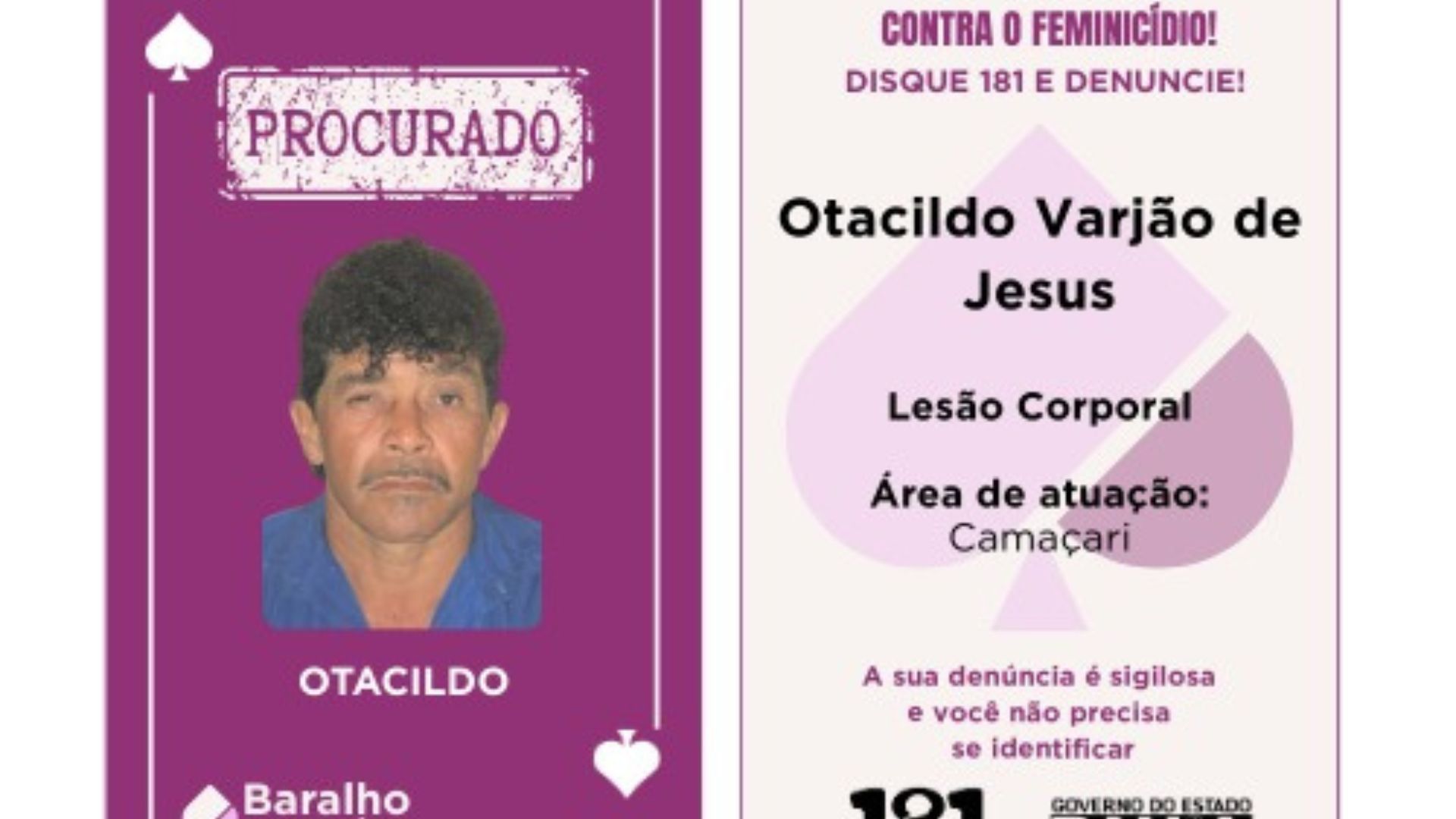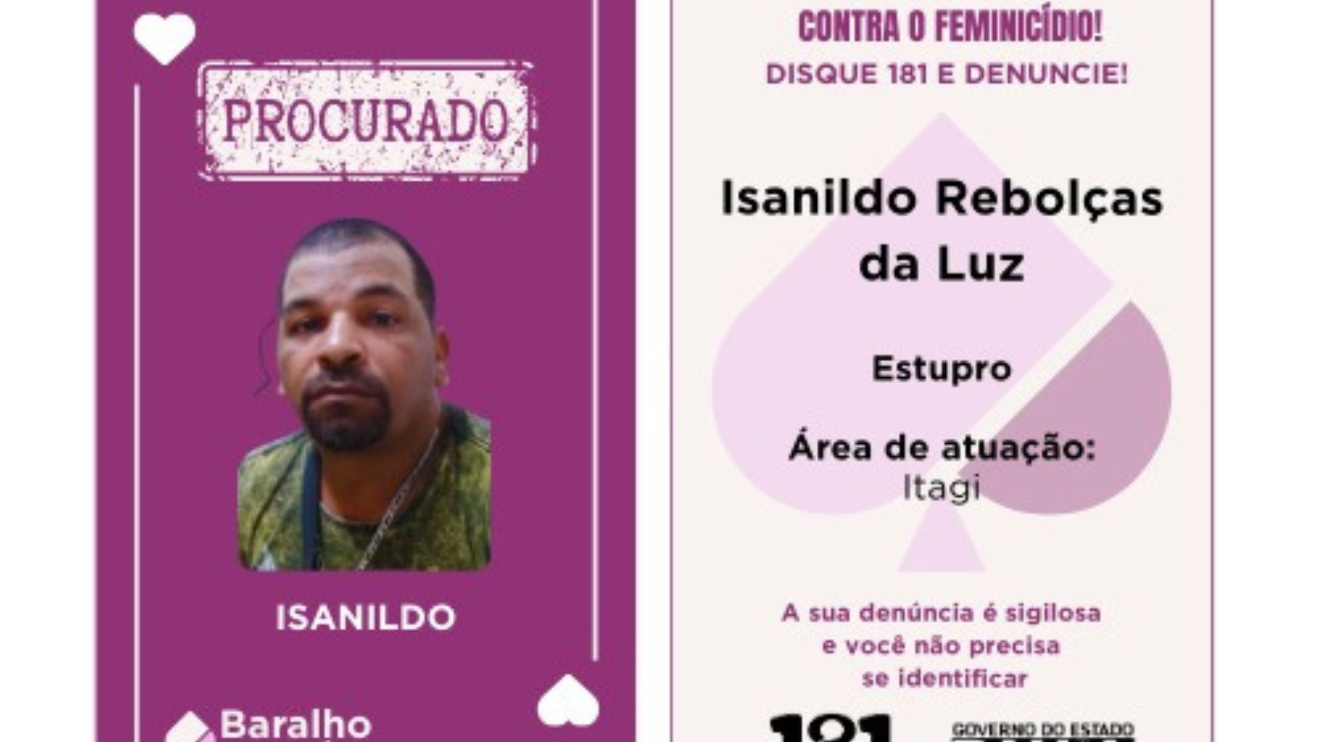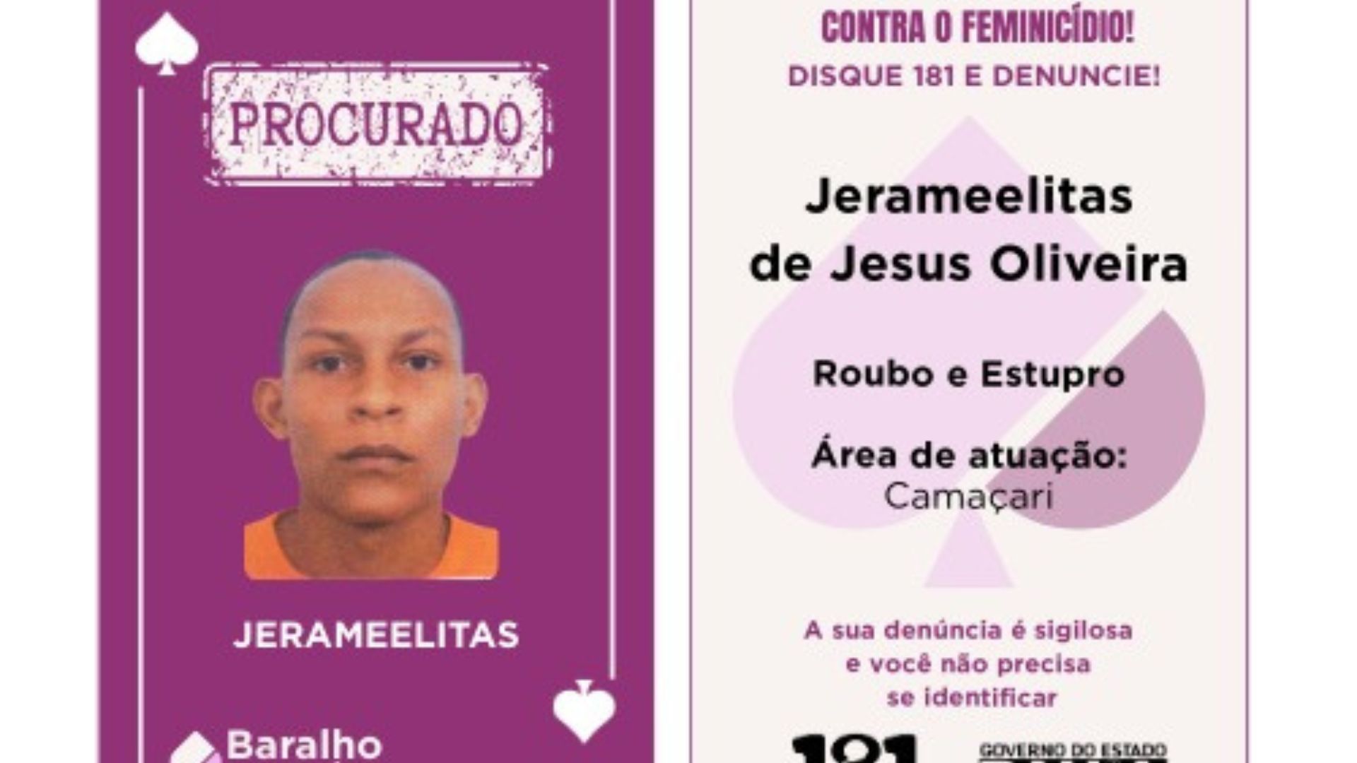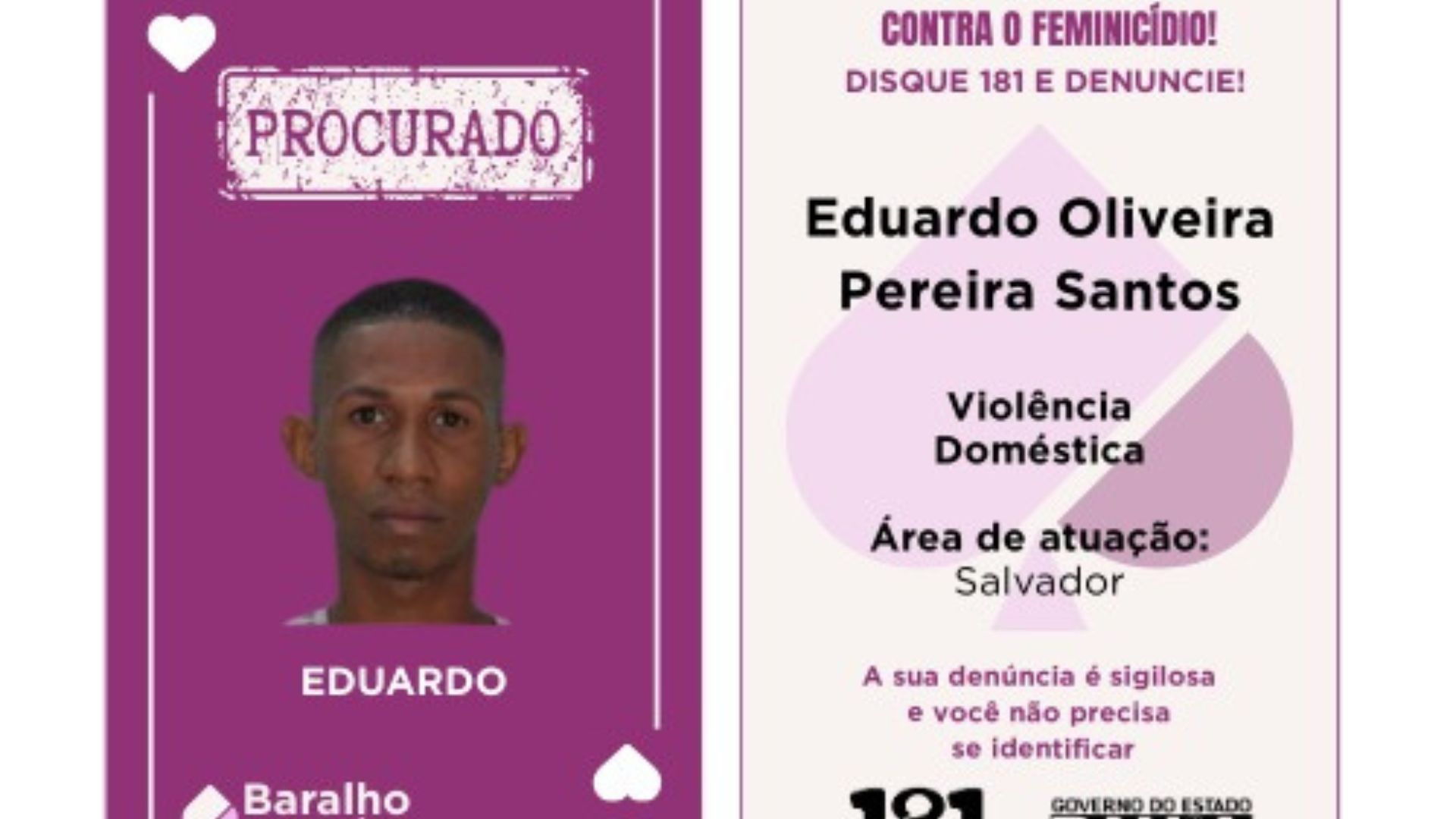 A Secretaria da Segurança Pública da Bahia (SSP) lançou nesta sexta-feira (12) o Baralho Lilás da SSP, plataforma que apresenta 16 procurados por crimes como estupro, estupro de vulnerável, feminicídio, tentativas de feminicídio, abuso de menor e violência doméstica.