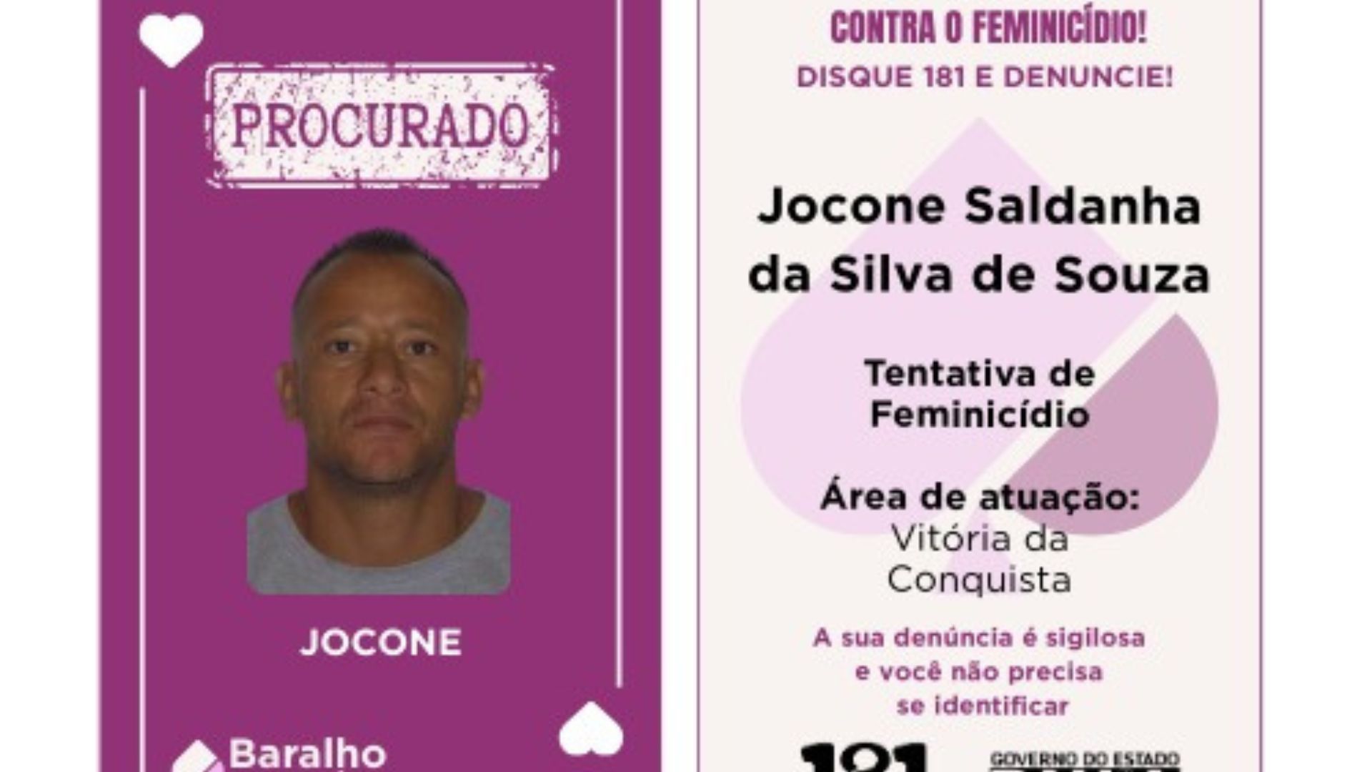Ás – Jacone Saldanha da Silva Souza, procurado por tentativa de feminicídio (Vitória da Conquista);
